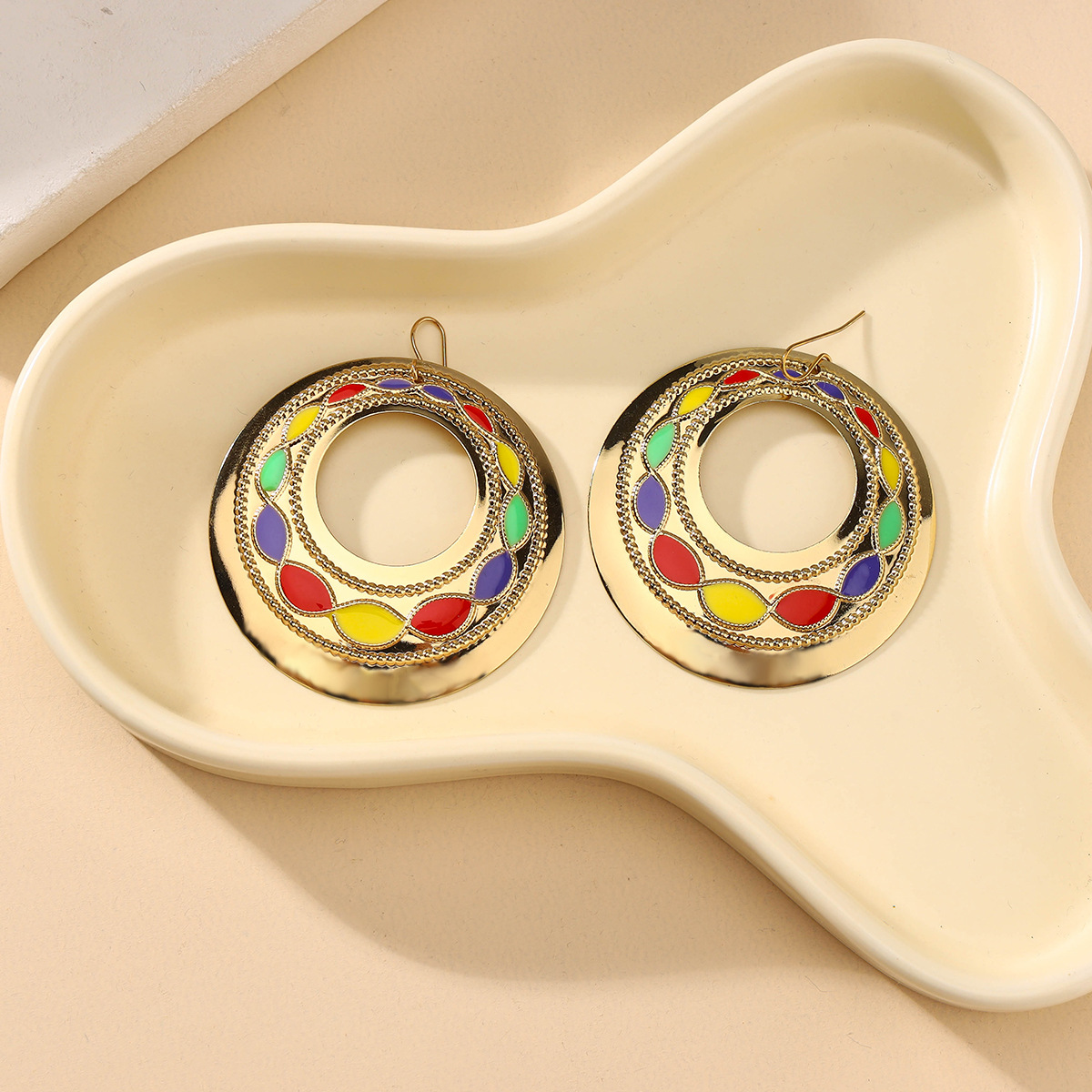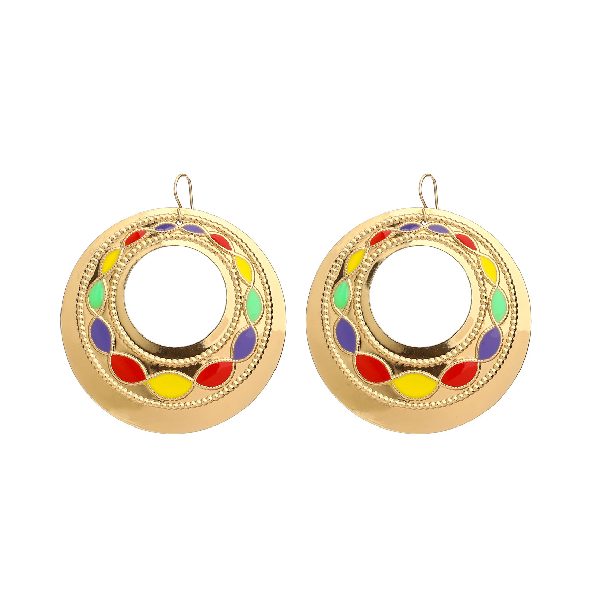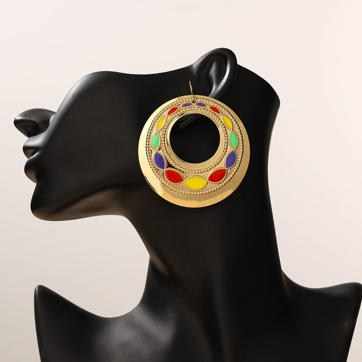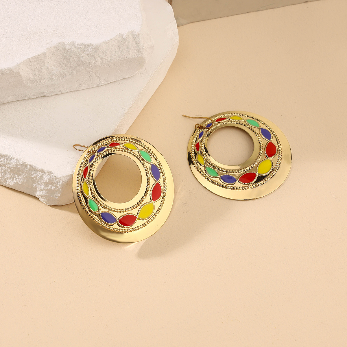 Europe And The United States Exaggerated Personality Plated 18K Gold Ear Hanging Middle Atmosphere Water Drop Ear Clip Vintage Pattern Set Jewel Earrings