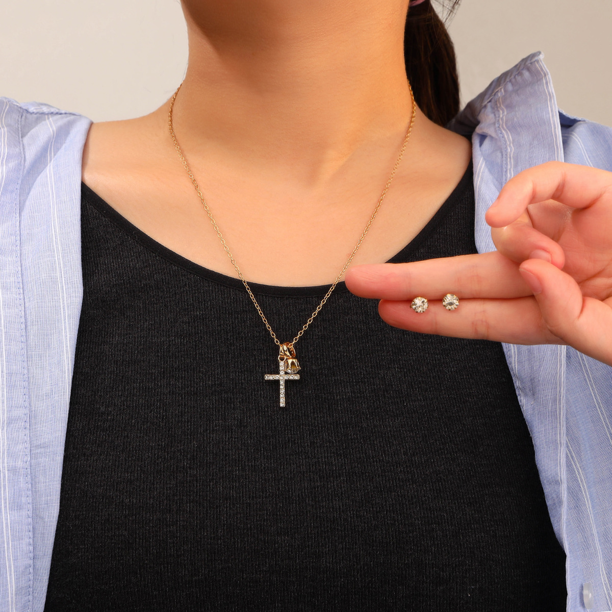 Simple High-Grade Alloy Necklace Personality Diamond-Encruped Cross Pendant Light Luxury Niche Collarbone Chain Manufacturers Wholesale